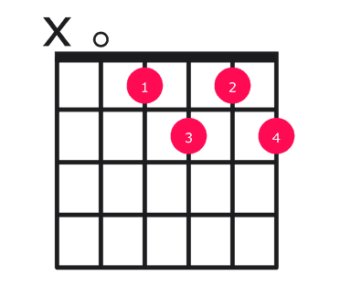 - Place your index finger across all six strings at the 4th fret, creating a barre.