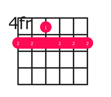 - Place your index finger across the 5th fret, covering all six strings (barre).