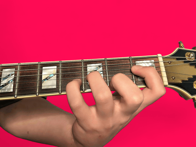 - Place your ring finger on the 8th fret of the 5th (A) string.