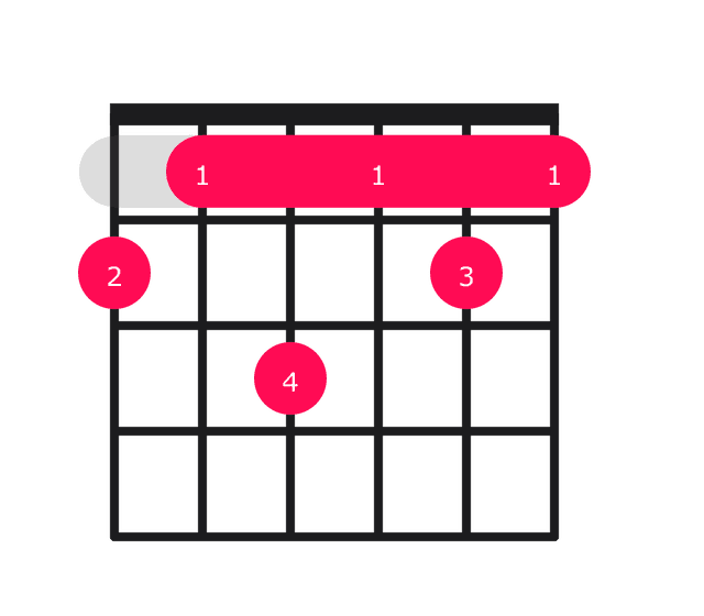 - Place your index finger across all six strings at the 2nd fret, forming a barre.